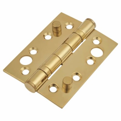 Security Ball Bearing Butt Door Hinge - 102 x 76 x 3mm - PVD Brass - Pair