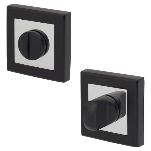 • Exel Square Bathroom Turn & Release - 52mm Diameter - Matt Black/Polished Chrome
