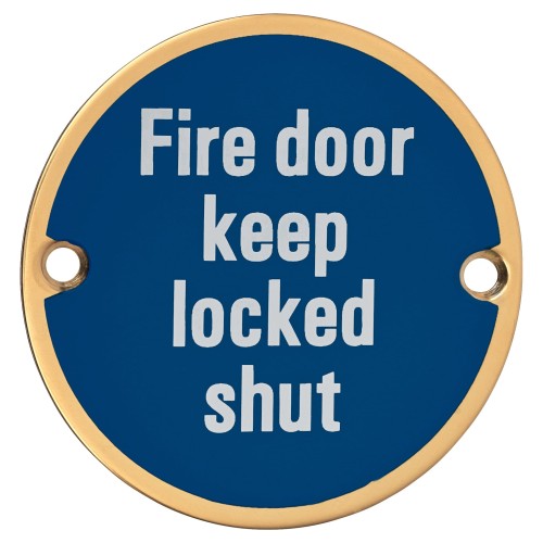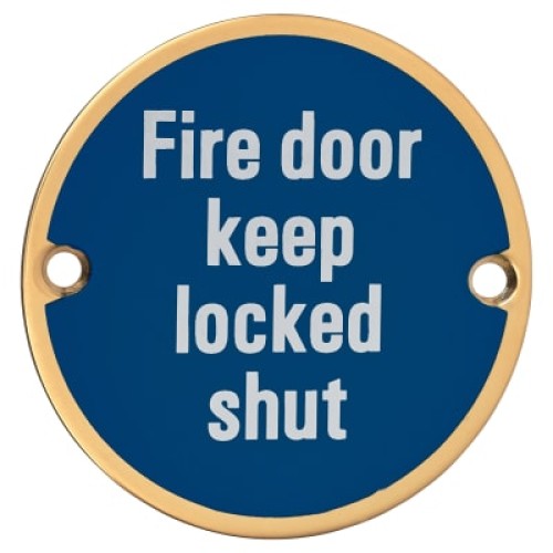 Hampstead Fire Door Keep Locked Shut Door Sign - 75mm Diameter - Polished Brass