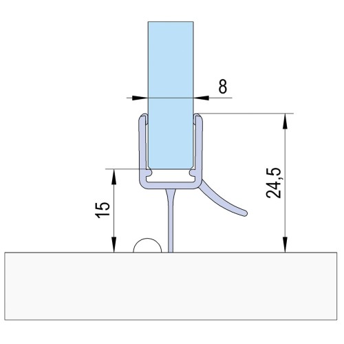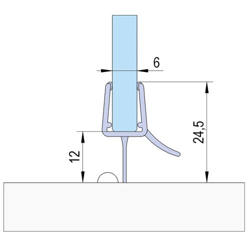 • Bohle bottom wipe seal with water deflector for glass shower doors used for sealing gaps near shower door edges