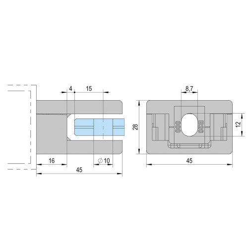 Bohle Square Balustrade Clamps & Inserts - 10mm Glass - 45mm x 45mm - Polished Chrome - Pack of 4