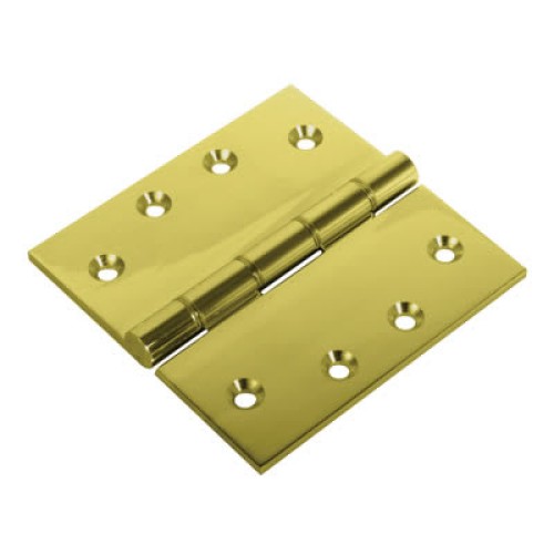 Double Phosphor Bronze Washered Butt Door Hinge - 100 x 100 x 4mm - Polished Brass - Pair