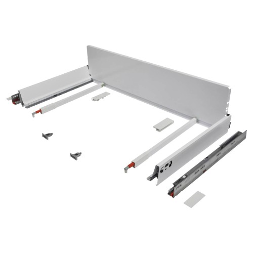 • TANDEMBOX ANTARO Pan drawer pack contains: Drawer runners, drawer sides, steel back, gallery rails and fixing brackets
