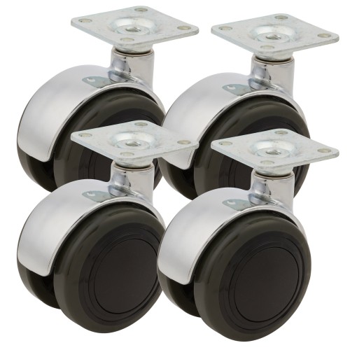 Coldene Twin Wheel Furniture Castor - Swivel - 80kg Max Weight - 50mm Diameter - Black - Pack of 4