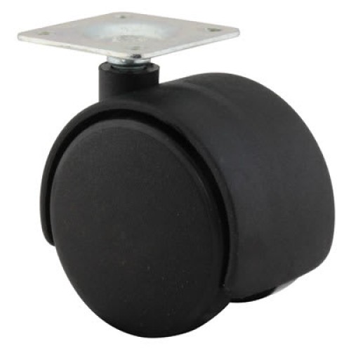 • Mini Twin Wheel Castor - Swivel No Brake - 45kg Max Weight - 50mm Diameter - Black - Pack of 4