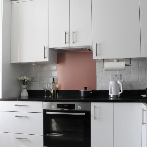 High quality, reversible aluminium splashback, brushed copper one side and brushed black the other