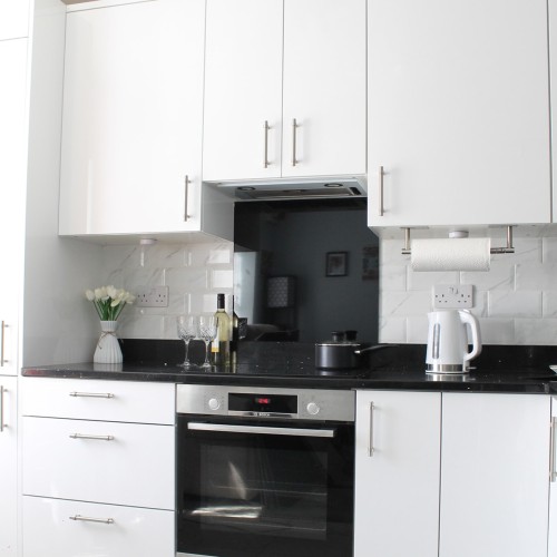 High quality, reversible aluminium splashback, gloss one side and matt the other