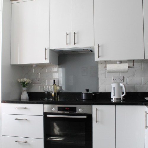 High quality, reversible aluminium splashback, gloss one side and matt the other