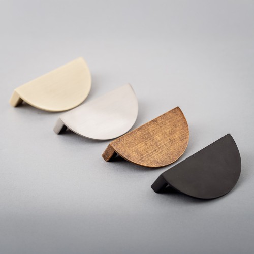 Stylish semi circle finger pull handle suitable to complement any style of furniture or hardware