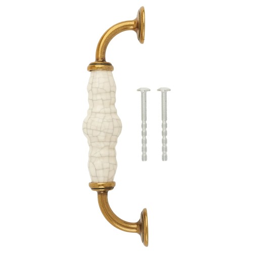 • Vintage style D-Bar cabinet pull handle with a porcelain crackle, ideal for kitchens or bathrooms