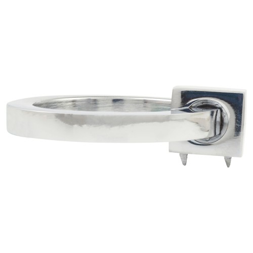 Ring pull ring with a square fixing plate in a polished chrome finish