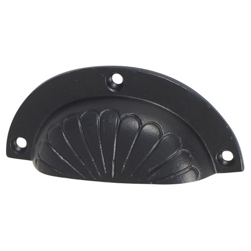 Olde Forge Shell Cabinet Cup Handle - 84mm Centres - Black Iron