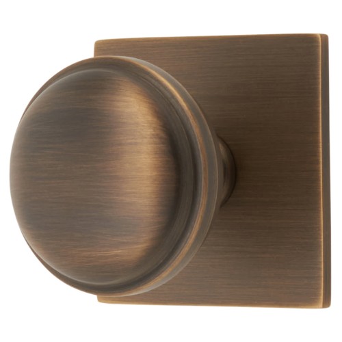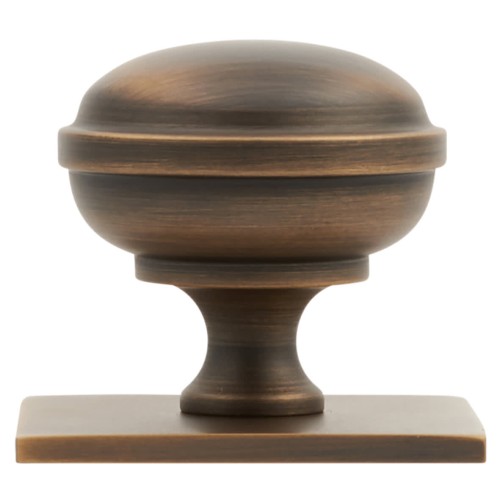 • Alexander & Wilks Quantock Cabinet Knob on Square Backplate - 38mm Diameter - Antique Brass