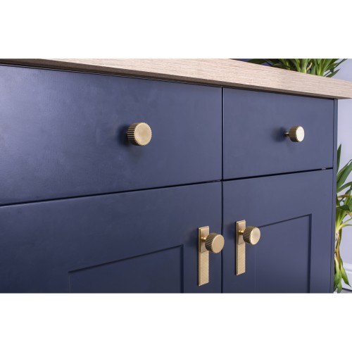 The Barrington cabinet knob on backplate features a striking ribbed texture