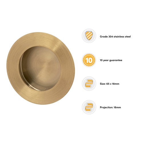 • Exel Circular Flush Cabinet Pull Handle - 65mm Diameter - PVD Satin Brass
