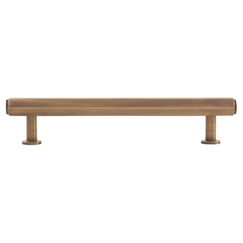 Alexander & Wilks Vesper Hex 14mm T-Bar Cabinet Pull Handle - 128mm Centres - Antique Brass