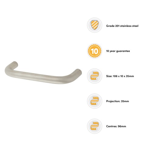 Exel 10mm D-Bar Cabinet Pull Handle - 96mm Centres - Satin Stainless Steel