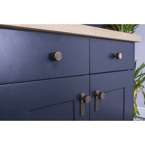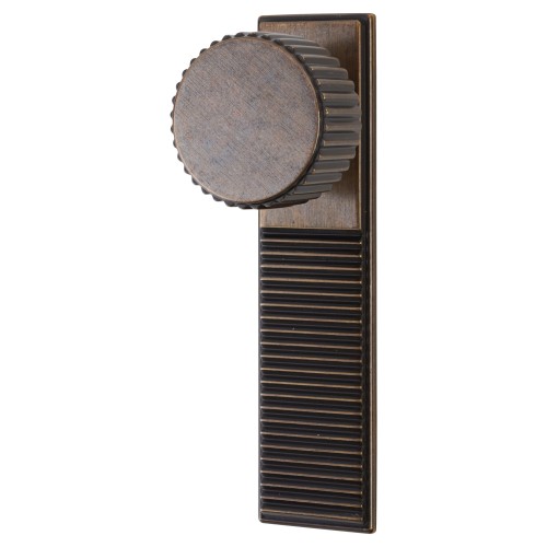 The Barrington cabinet knob on backplate features a striking ribbed texture