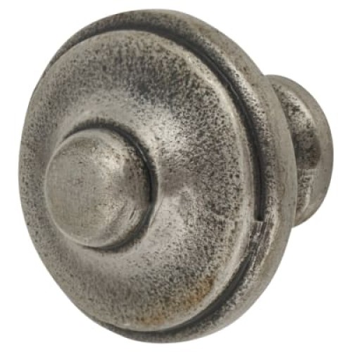 Olde Forge Button Round Cabinet Knob - 35mm Diameter - Pewter Effect