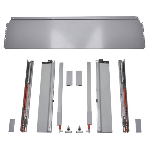 • TANDEMBOX ANTARO Pan drawer pack contains: Drawer runners, drawer sides, steel back, gallery rails and fixing brackets