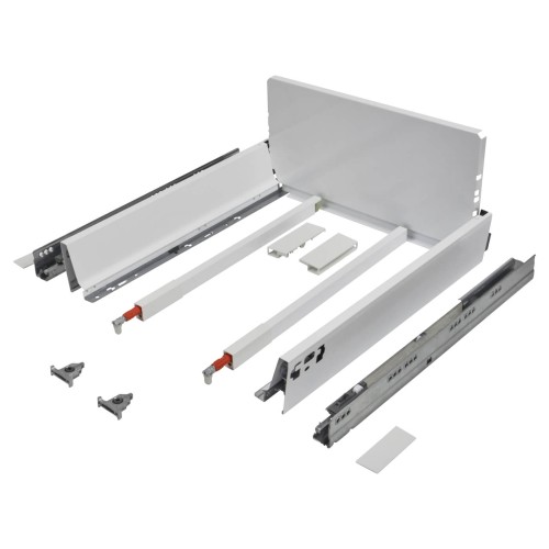 • TANDEMBOX ANTARO Pan drawer pack contains: Drawer runners, drawer sides, steel back, gallery rails and fixing brackets