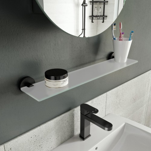 • Croydex Epsom Flexi-Fix Frosted Glass Shelf - 590 x 135.5 x 60mm - Matt Black