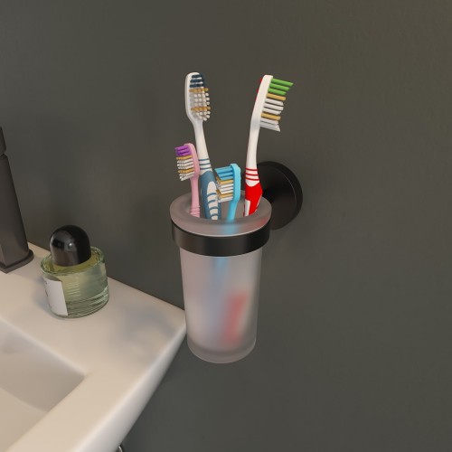 • Frosted glass tumbler and black holder with Flexi-Fix fitting - a no fuss method of securing to walls without damaging decor