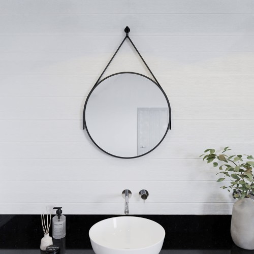 • Croydex Flexi-Fix Bathroom Mirror with Leather Effect Hanging Strap - Round - 600 x 32mm - Black