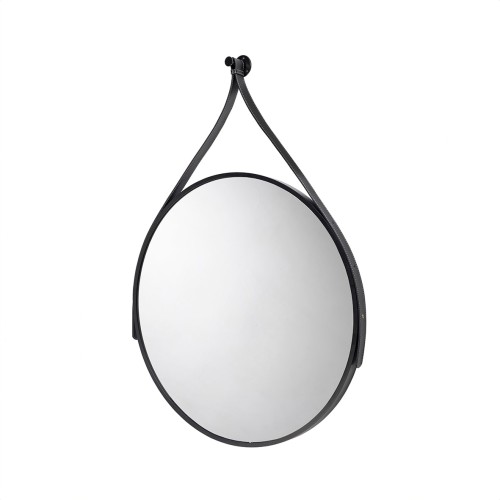 Croydex Flexi-Fix Bathroom Mirror with Leather Effect Hanging Strap - Round - 600 x 32mm - Black