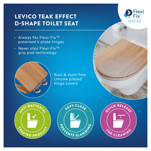 • Croydex Levico Flexi-Fix Soft Close Wooden Toilet Seat - Teak