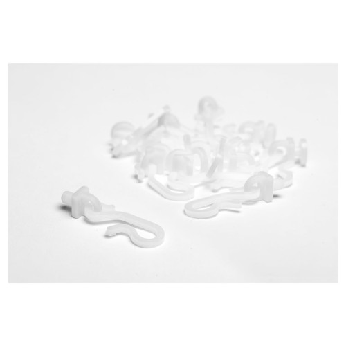 Supplied with 12 nylon hooks and gliders for one shower curtain
