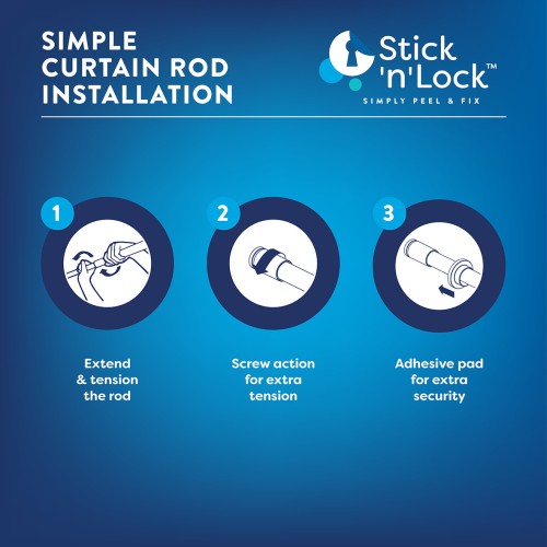 • Croydex Stick 'n' Lock Premium Shower Rail - Telescopic Rod - 1295-2298mm Length - Polished Chrome