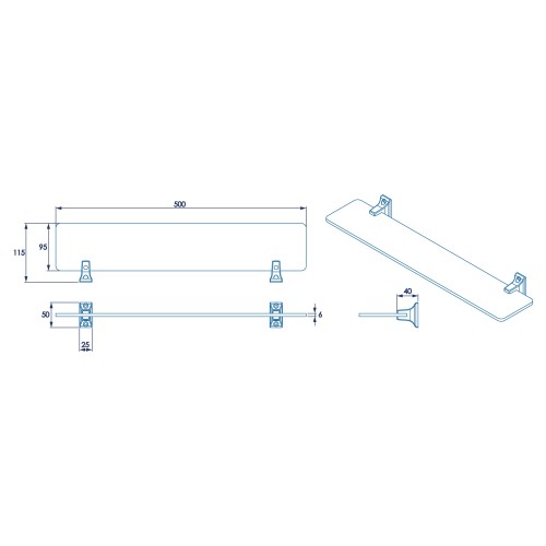 • Croydex Sutton Glass Shelf - 500 x 115mm - Polished Chrome