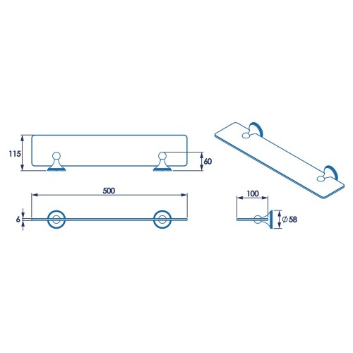 • Croydex Westminster Glass Shelf - 500 x 115mm - Polished Chrome