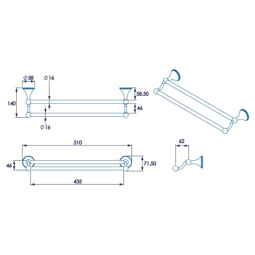 Croydex Westminster Round Double Towel Rail - 70 x 510 x 140mm - Polished Chrome