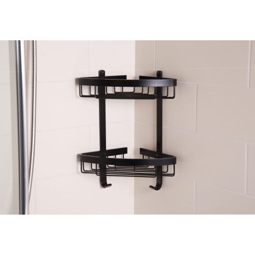 • Croydex Wirework Large Corner Shower Basket - Two Tier - 390 x 312 x 209mm - Matt Black