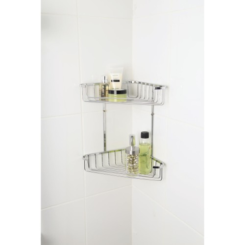 • Croydex Wirework Medium Corner Shower Basket - Two Tier - 320 x 250 x 150mm - Mild Steel