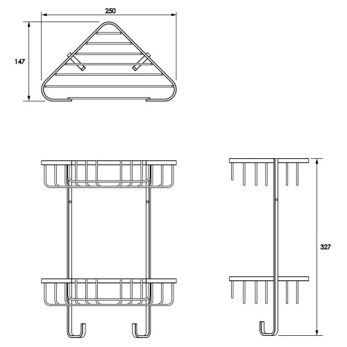 • Croydex Wirework Medium Corner Shower Basket - Two Tier - 320 x 250 x 150mm - Stainless Steel