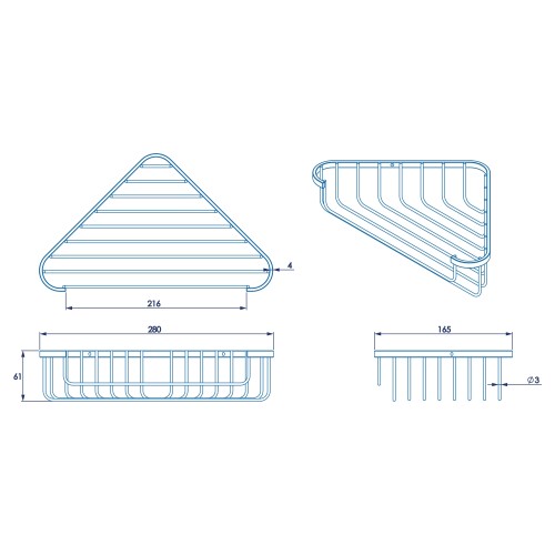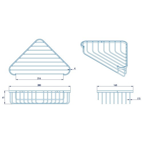 • Croydex Wirework Medium Corner Shower Soap Dish Basket - 60 x 280 x 165mm - Mild Steel
