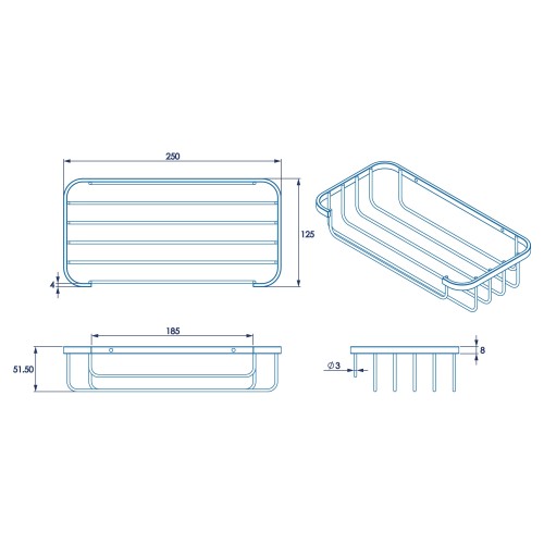 • Croydex Wirework Medium Shower Soap Dish Basket - 65 x 250 x 120mm - Mild Steel