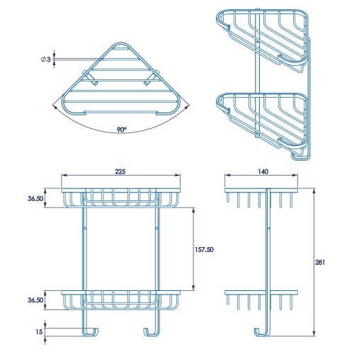 • Croydex Wirework Small Corner Shower Basket - Two Tier - 285 x 230 x 135mm - Mild Steel