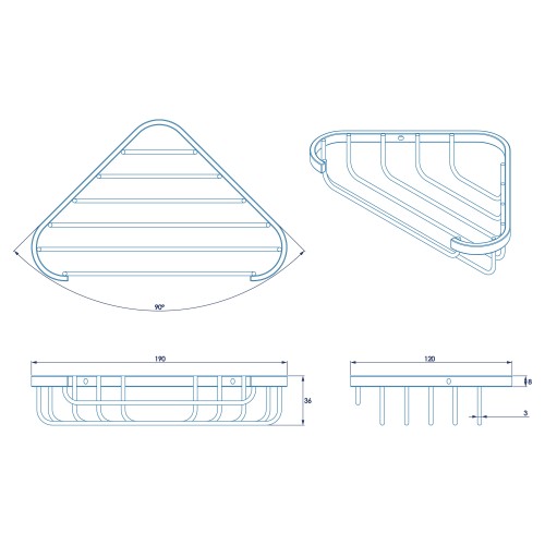 • Croydex Wirework Small Corner Shower Soap Dish Basket - 40 x 195 x 120mm - Mild Steel