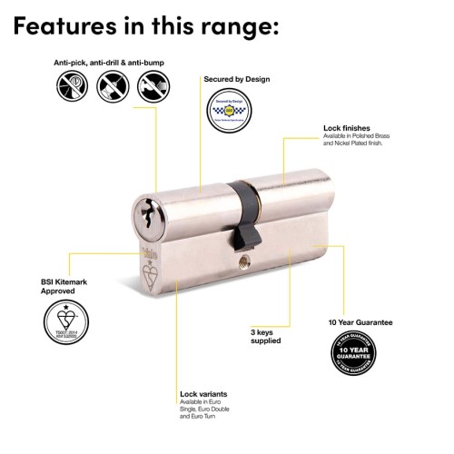 The cylinder is Kitemark & Secured by Design approved
