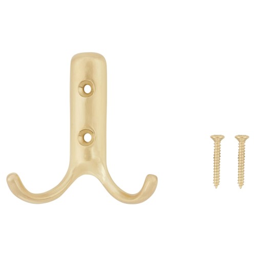 Exel Double Coat Hook - 70 x 56mm - Satin Brass