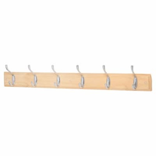 Exel Hat & Coat Hook Rail - 685 x 70mm - 6 Hooks - Pine Board with Polished Chrome Hooks