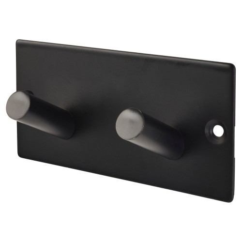 Exel Square Horizontal Hook Plate - 90 x 45mm - 2 Hooks - Matt Black