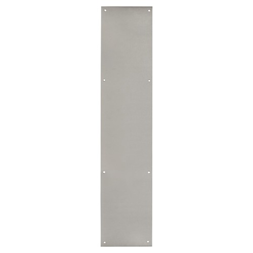 A satin stainless steel plate designed to prevent damage to doors over time