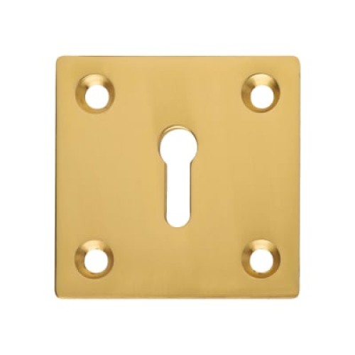 Square Plate Brass Escutcheon - 52 x 52mm - Keyhole - Polished Brass