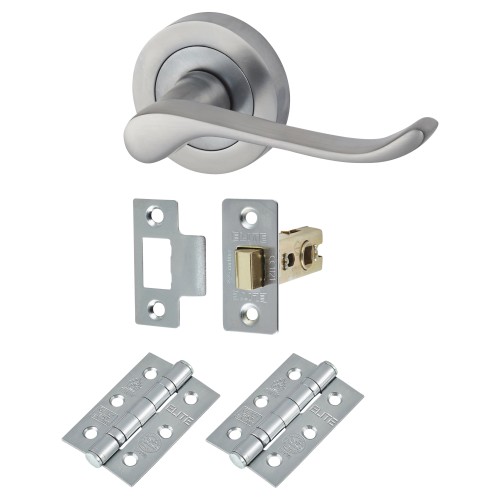 Exel Scroll Latch Door Handle on Rose Kit - Satin Chrome