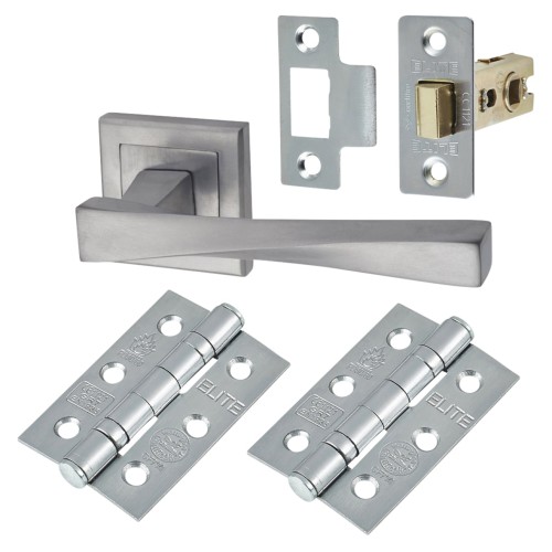 • Each kit contains everything you need for one door: 1 x pair of handles, 1 x pair 75mm stainless steel hinges, 1 x tubular latch (case size 75mm, backset 57mm)